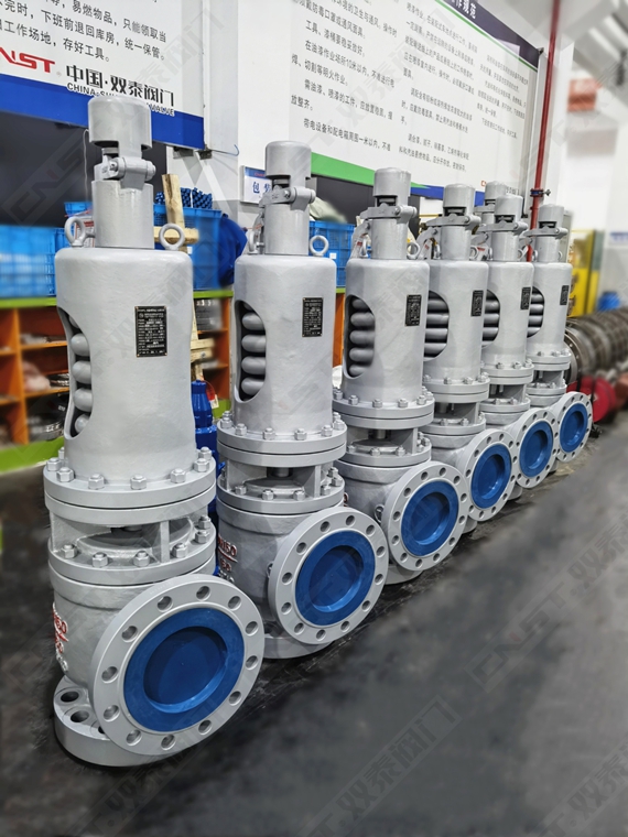 雙泰國標(biāo)高壓蒸汽安全閥,遵循規(guī)范、標(biāo)準(zhǔn):GB/T12241、GB/T12242、GB/T12243,適用于高溫、高壓、高排量的場合。是一種高溫高壓蒸汽專用安全閥。主要用于蒸汽發(fā)電等領(lǐng)域,是受壓設(shè)備、容器或管路上的超壓保護(hù)裝置。閥蓋和閥體之間帶散熱器,將介質(zhì)與彈簧隔離行程拉長,有效的保護(hù)彈簧和整定壓力數(shù)值。其主要優(yōu)點是閥座內(nèi)腔流道設(shè)計成拉斐爾噴嘴的光滑低阻力形狀,內(nèi)部采用雙調(diào)節(jié)圈全啟式結(jié)構(gòu),排量大,開啟回座靈敏度高。帶敞開式扳手的安全閥適用于安全閥的定期試驗,同時也可作為人工緊急卸壓使用。采用WCB碳鋼材質(zhì),內(nèi)件采用A182 F304不銹鋼,彈簧采用30W4Cr2V彈簧鋼。原材料硬度均按標(biāo)準(zhǔn)熱處理,使安全閥適用于溫度高達(dá)425℃(碳鋼極限溫度),具有優(yōu)異的耐高溫特性??稍诰€調(diào)校,反復(fù)啟跳排放后,仍然能自動回座,關(guān)閉嚴(yán)密,操作維護(hù)方便。在石油石化特殊高溫高壓工況方面均有良好業(yè)績。